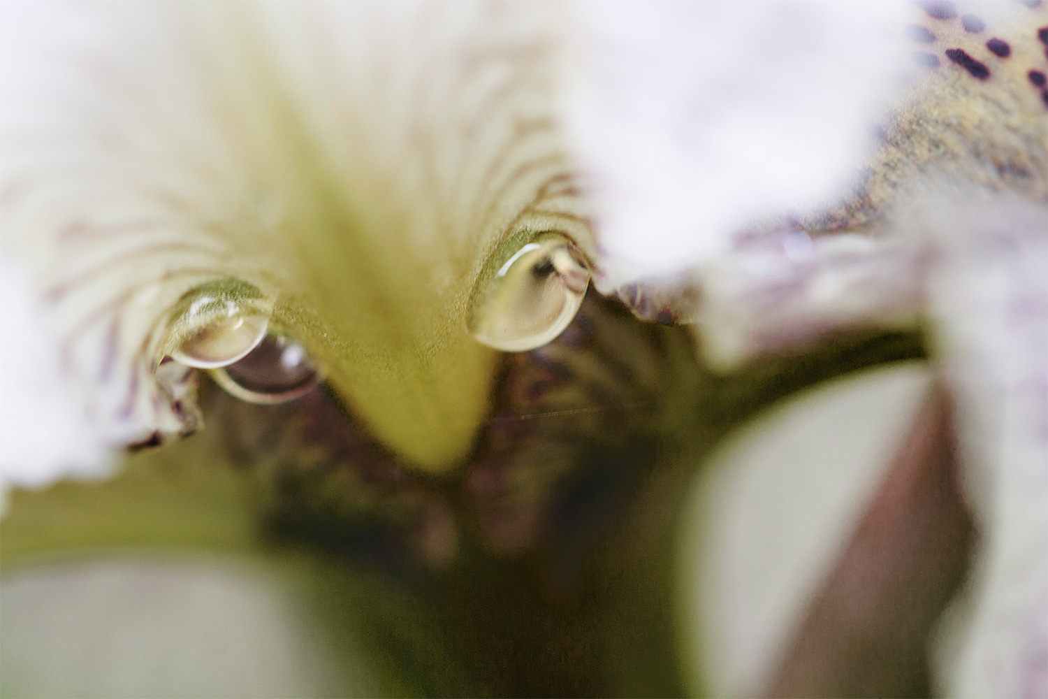 I often found myself staying for up to three hours with a single individual flower, letting myself absorb its presence, the light, the sound and the air, looking for a better angle or a different light, or experimenting with the background or with a different shooting technique. Sometimes I was constrained by the wind, and at other times aided by it. I was intimately photographing portraits of iris flowers. At their home I saw them and they saw me Eye to Eye, Iris to Iris.